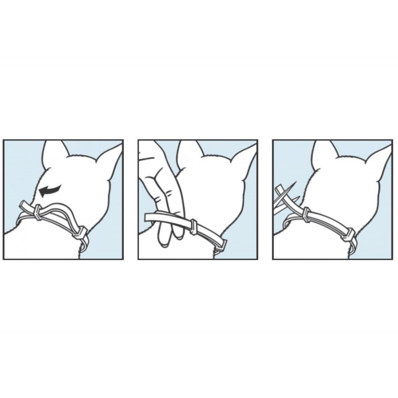 Adjust the Seresto collar by gently pulling on the collar and leaving enough space for two fingers between the collar and your cat's neck. The end of the collar can be cut off; be sure to leave an extra 2 cm after the buckle.